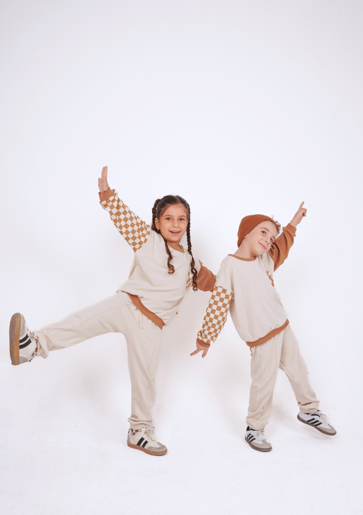BabyBEK Premium Unisex Eşofman Takımı - Kahverengi Dama