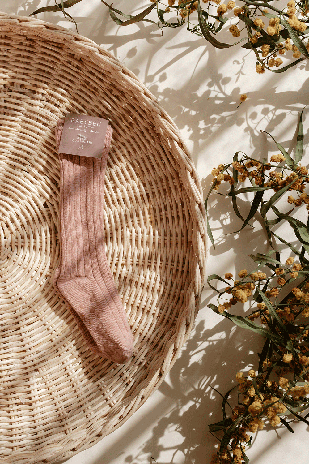 Dizaltı Pamuk Çorap - Gül Kurusu