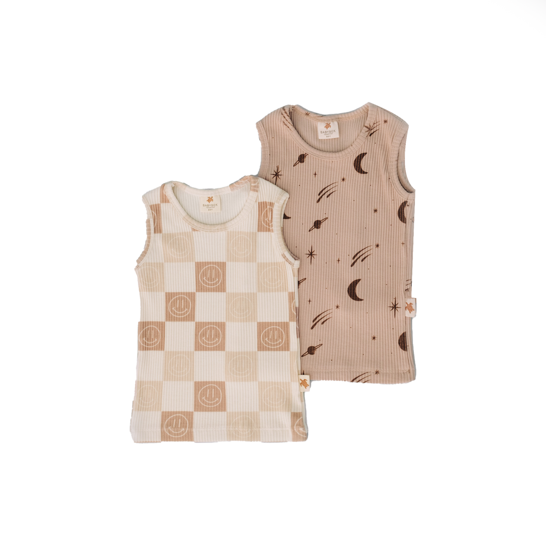 BABYBEK Premium Pamuklu Uzay-Smiley 2'li Çocuk Atlet