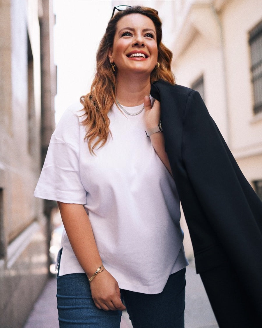 BABYBEK Premium Oversize Kadın Beyaz T-shirt