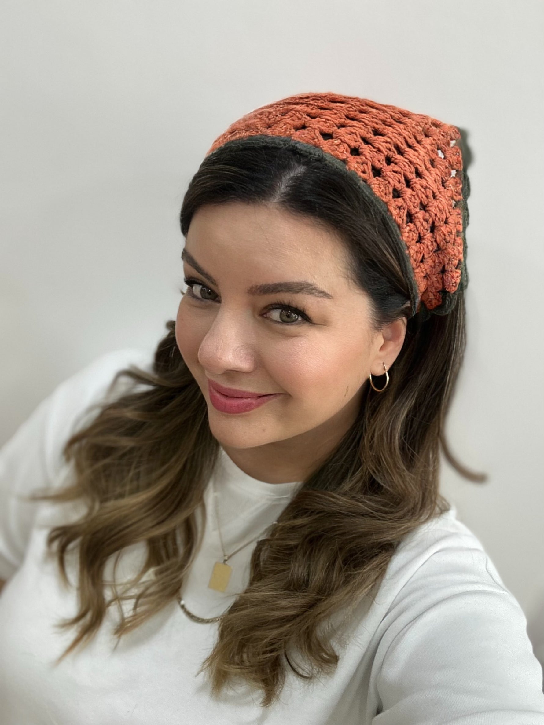 El Örgüsü Saç Bandana - Kiremit/Haki