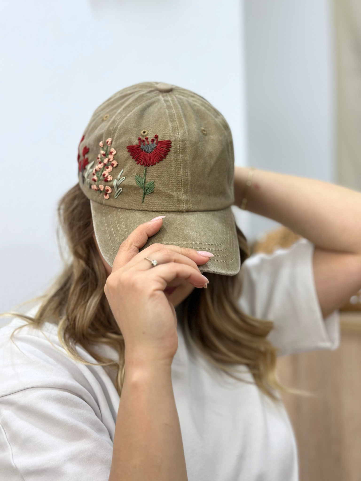 Şıklığı ve zarafeti bir araya getiren bu özel tasarım şapka, gününüzü renklendirecek! Yumuşak haki tonları üzerinde yer alan el işçiliği nakış detayları, doğadan ilham alınarak tasarlanmıştır. Dayanıklı kumaşı ve rahat yapısıyla hem günlük kombinlerinizde hem de özel anlarınızda stilinizi tamamlar.